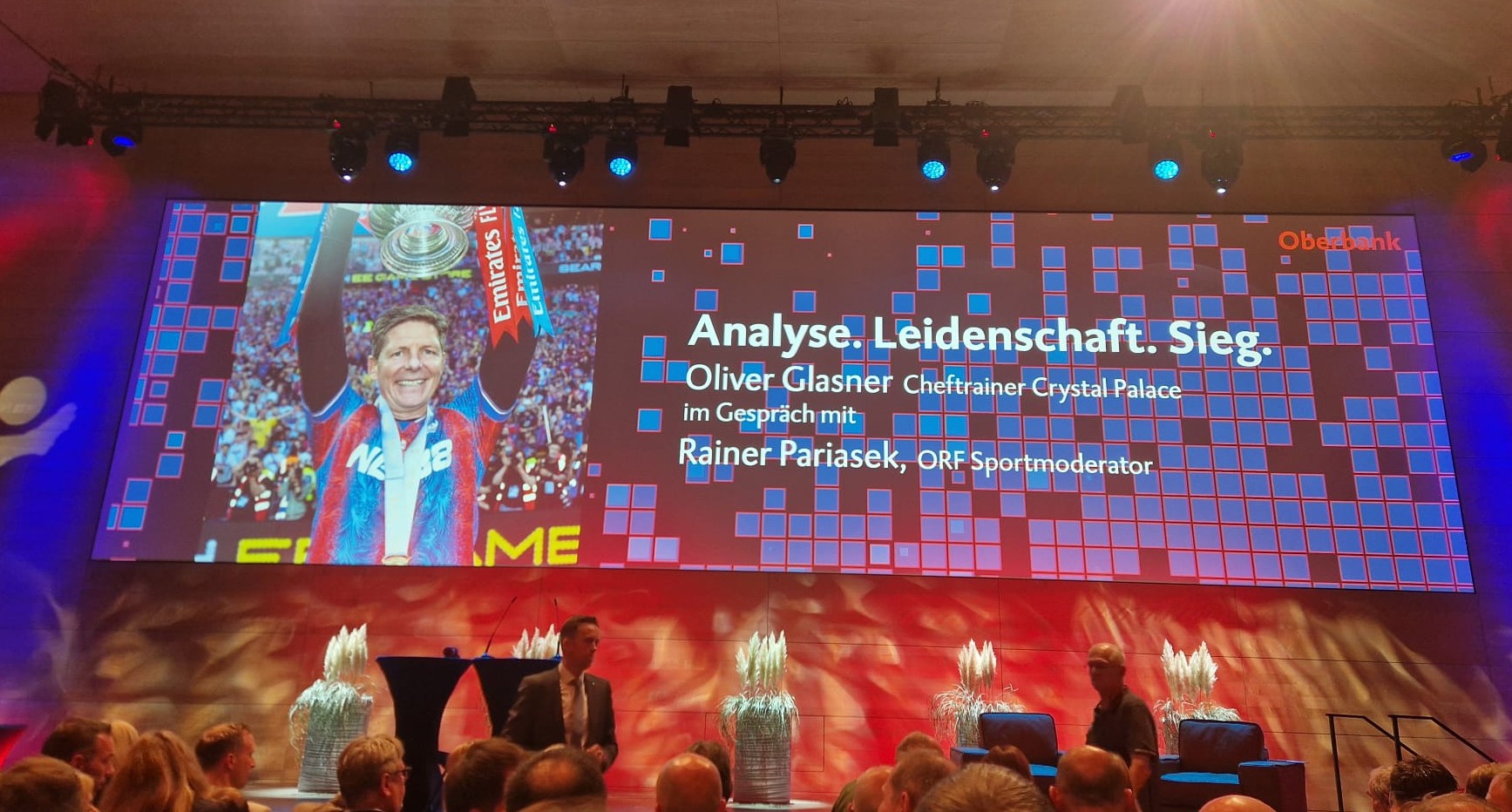 Der Erfolgstrainer aus Riedau war in Linz bei der Oberbank zu Gast. Auch wir vom Fanclub durften bei diesem Event dabei. Rainer Parisasek moderierte den Fussball Talk und wir haben viel über seine Karriere als Spieler und Trainer erfahren. Wir überreichten ihm ein Fanclubschal und hoffen, daß er mal bei seinem Traumverein arbeiten kann.