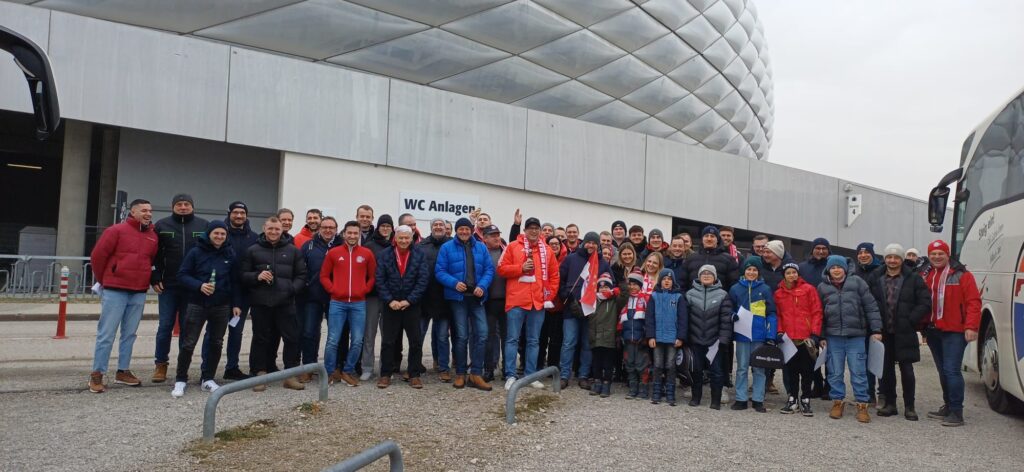 Mit rund 50 Personen machte sich die Union Prambachkirchen mit dem Busunternehmen Ratzenböck auf den Weg nach München zum Spiel gegen Augsburg. Die Stimmung auf der Fahrt und im Stadion war großartig, auch wenn das Match sportlich mit einer 1:2-Niederlage endete. Trotz des Ergebnisses war es ein gelungener Ausflug und ein tolles Gemeinschaftserlebnis. Ein besonderer Dank gilt dem Busunternehmen Ratzenböck für die angenehme An- und Abreise sowie Hannes Obernhumer für die Organisation bzw. die zur Verfügung gestellten Eintrittskarten.