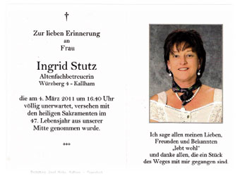 In lieber Erinnerung an unser Mitglied "Ingrid Stutz"